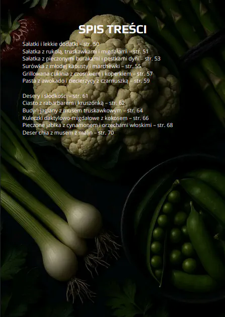 Czerwiec to także idealny moment na sałatki i lekkie dodatki, które w tym e-booku zajmują ważne miejsce. Znajdziesz tu kompozycje z młodych warzyw, zieleniny, świeżych ziół i prostych dressingów. To dania, które można jeść samodzielnie, zabrać do pracy albo podać jako dodatek do obiadu. Szybkie, świeże i bardzo sezonowe.