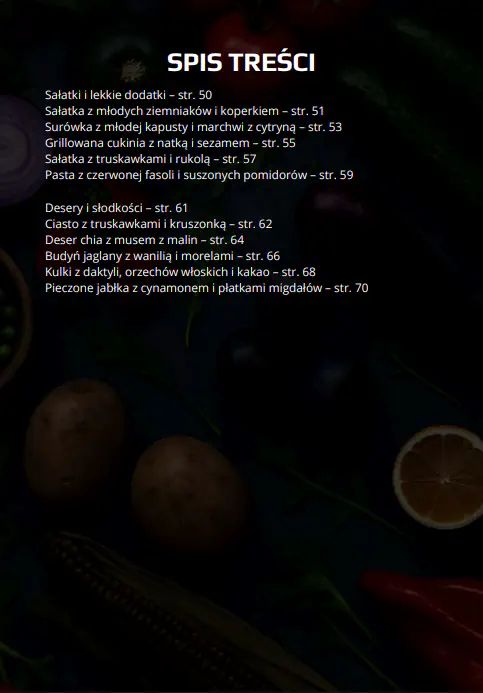 Na koniec coś słodkiego – w sekcji deserów czekają m.in. propozycje z letnimi owocami, bez ciężkich składników i długiego pieczenia. Proste, domowe desery, które dobrze sprawdzają się w ciepłe dni i które można przygotować „na zapas” albo zrobić spontanicznie, kiedy pojawi się ochota na coś słodkiego.